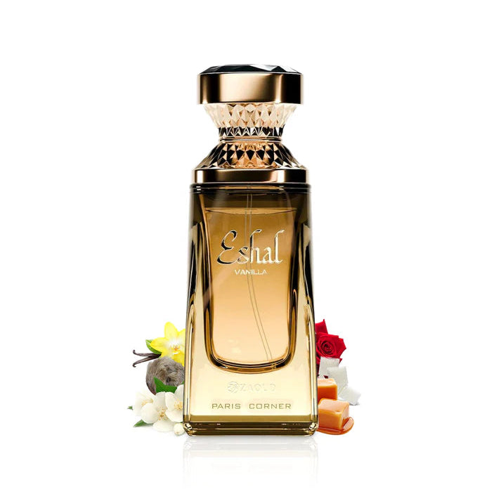 Eshal Vanilla från Paris Corner är en söt, feminin och romantisk gourmanddoft med en mjuk, varm och förförisk känsla. En elegant mix av blommig charm och krämig vaniljsötma som lämnar ett mjukt, sensuellt och oförglömligt spår. Perfekt för dig som älskar riktigt söta och feminina parfymer.