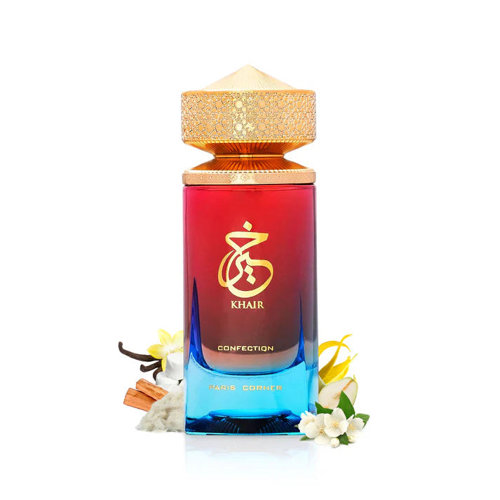 Khair Confection från Paris Corner är en feminin, blommig‑fruktig gourmanddoft som hyllar kvinnlighet med en lekfull och förföriskt söt elegans för kvinnor som vill sticka ut.