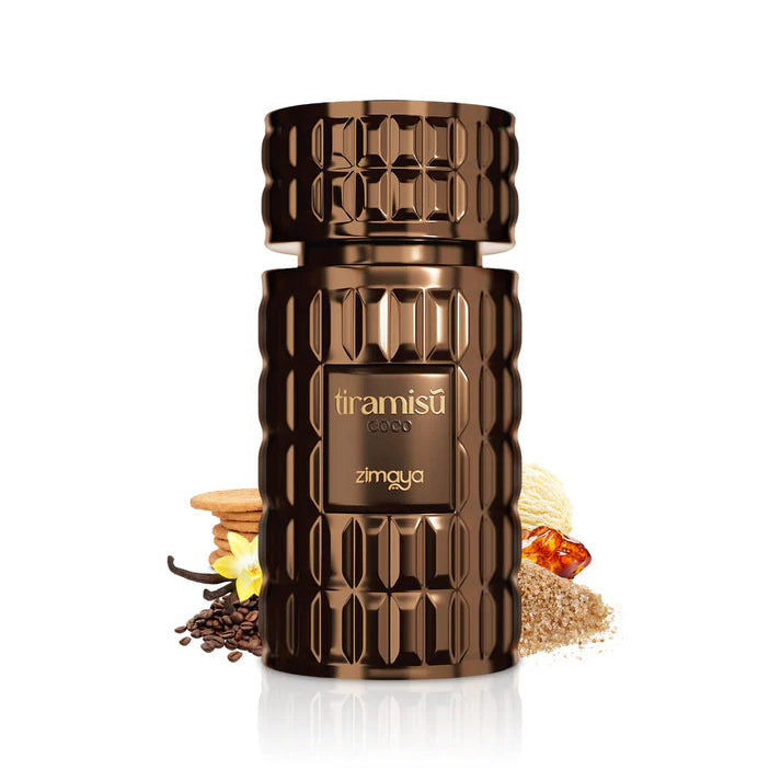 Tiramisu Coco från Zimaya är en varm unisex‑gourmanddoft som kombinerar amaretto, kaffe, krämig vanilj och söt amber till en elegant, dessertinspirerad aura som känns både lyxig och oemotståndlig.